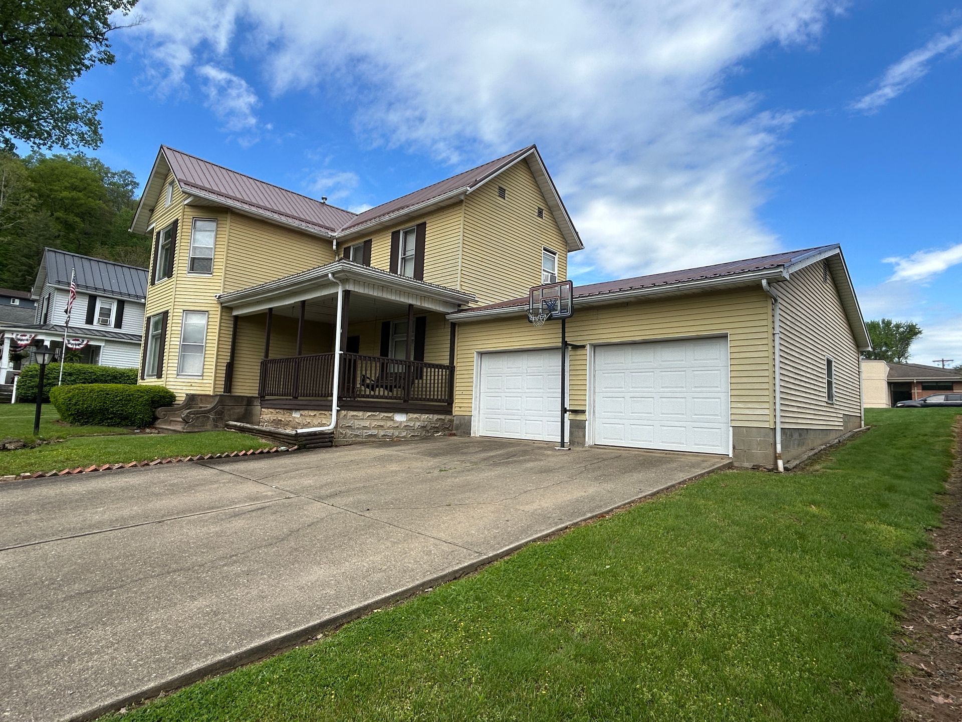 Excited to Offer this Charming 2-story home located on 2 city lots at Public Auction. The exquisite Oak woodwork throughout the home gives the feel of times gone by, but updated for your modern conveniences. The Oak stairway leads to 3 bedrooms and full bath. 1st floor consists of a large Master Bedroom, formal sitting room, Gas log fireplace, Large spacious living room, Kitchen w/Oak cabinets, dining area w/Oak cabinets, built in dish washer, Storage pantry, Utility room, and Full bath. The gas forced air furnace is located in the partial basement. There is a 2-car attached garage w/concrete floor and driveway. Home has air conditioning, aluminum siding, and newer metal roof. The large backyard leads to the 640 Sq.Ft. garage at the back of the property which could be used as an extra garage or for a workshop. You don’t want to overlook this beautiful home.