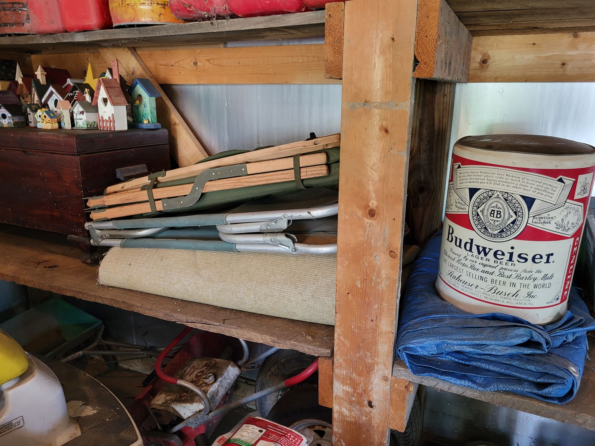 GOLF CARTS, CUB CADET, PONTOON, TOOLS, ETC.: Club Car Gas power Golf Cart w/utility bed #10, Ingersoll-Rand motor & hitch; Yamaha Golf Cart w/rear seating; Cub Cadet XTZ Enduro (LT42) 5400 series w/19.5 HP; 1994 Yamaha Wave Runner Jet Ski w/trailer; 2007 Atlantic X Scooter w/2121 mi; 1998 Suzuki Quad runner 300 4-wheeler; Push mowers; Craftsman walk-behind trimmer; Toro snow blower; Craftsmen & Echo weed eaters; Portland Power washer; Lowes gas Power washer; ONAN 5 HP B & S Generator; Aluminum Ramps; Metal car ramps; Yard cart; Grass catcher; Step ladders; Aluminum Ladders; Battery chargers; 12” DeWalt Planner; 12V wench; Trailer wench; Creeper; Craftsmen radial arm saw; Gas cans; Log chain; Bolt cutters; EL-CO & Delta bench grinders; Table-top band saw; Jig saws; Saws; Craftsmen sander; Craftsmen ½” Indst drill/case; Wrenches; Edison Table top drill press; Power pro bench press; Craftsmen Circular saws; Drill bits; Chisels; Skil drill; MAC 3200 Chain saw; Stihl MS170 Chainsaw; Delta bench grinder; Bench vises; Garage hardware: nuts, bolts, screws, nails, etc.; Long handled tools; Sm. Hand tools; Buckets; Misc electrical items; Drain snake; Rope (some marina); Hydraulic floor jack; garbage cans; sm. roll chain fence; extension cords; Marina Items: 21’ Pontoon boat w/Johnson Seahorse 35 outboard motor, w/canopy & trailer; 16’canoe; Boat flags, Boat anchors, oars, life vests, marina oils, ski rope, ski’s, Wooden boat dock, etc.; GUNS: .44 cal. Repro. Black powder 1851 Navy Colt w/belt holster: Boys Rifle .22 cal. WWII Model 1912 single shot/bolt action Rifle; COLLECTIBLES: 5 Gal. galv. Gas can; Prim. Shelf; Army cots; Kennedy Steel Machinist Chest; CB Radio; Blow Mold Witch; Longaberger baskets; Steamer trunk; Oil lanterns: B & O R.R., P.R.R., C & O R.R., Barn Lanterns, Coleman, Deitz; Tupperware items; Club cookware; Graniteware; Boy Scout books & other; U.S. Navy hats; Military items; Metal lawn chairs; Wicker sets; Buck saw; Milk can; Cast Iron; Shephard hook; Krochet set; Shoe shine lits; Red rider BB gun; Childs wood wagon; Wyandotte Semi-trailer; Old pictures; Pocket knives; Fire king & Pyrex dishes; Local books; Iron wheels; Crosscut saw; HOUSEHOLD & MISC. ITEMS: Oak roll top desk; Oak writing table; Oak night stands; Table lamps; Oak file cabinet; Lane Cedar chest; Lane 2-dr cedar cupboard; Howard Miller 8-day clock; Sm. 30’s hutch; Swivel rocker; Maple table w/4 chairs & leaves; Couch; 2-Futons; Ladderback rocker; Office chair; Hoover sweeper; Microwave stand; Full Bed; Kitchen appliances; Cookware; Bakeware; Electric heaters; Garden items; Few linens; Box Lots; Gas grill; Misc. Metal signs; Christmas & other Décor.; Porch swing; Coolers; Totes; 3 Bikes; Picnic Tables; TERMS: CASH OR GOOD CHECK DAY OF SALE W/PROPER ID. Sale Day announcements